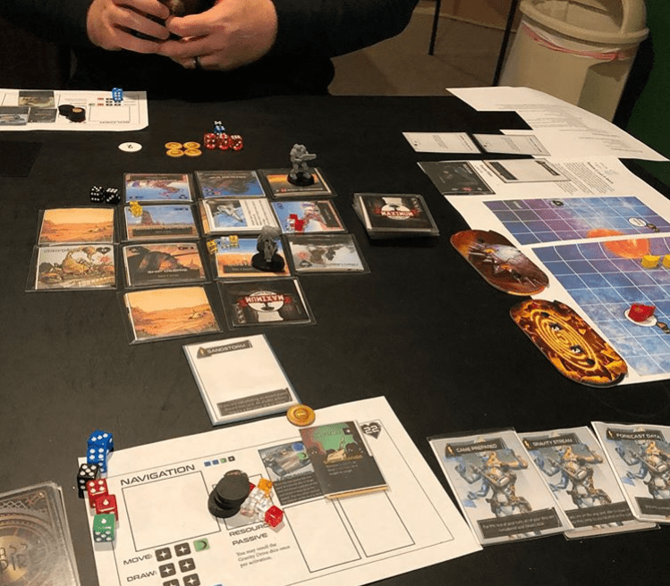 I had a similar experience with Set a Watch. I played it at a Game Makers Guild of Philadephia meetup and it just stayed with me. I found myself thinking about how cool it was at every GMG meeting over the following months. I think it was almost 6 months before Todd brought it back and I immediately volunteered to playtest it again. Even though I didn’t design Set a Watch, we had a similar process as we developed the camp actions, locations cards and abilities. Todd and I playtested and met up month after month to continue to iterate and refine the game while we started Art Production.