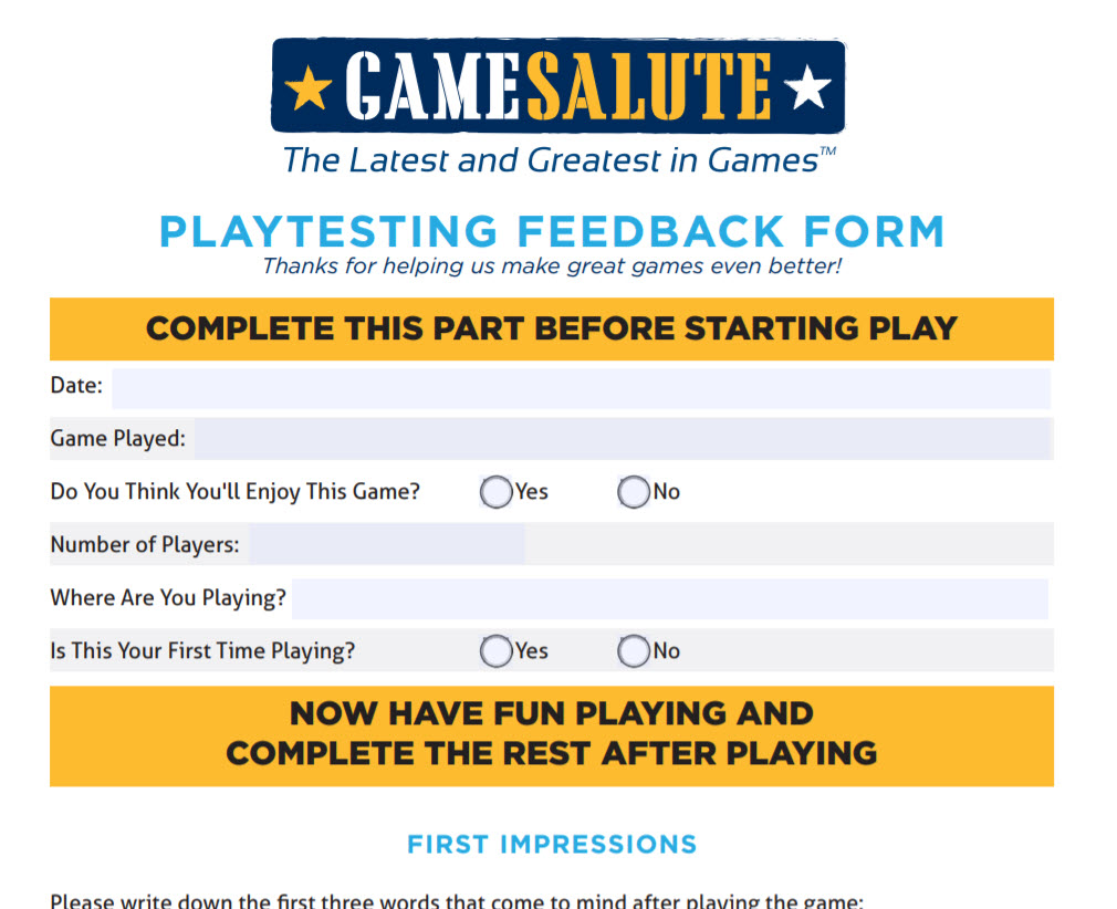 Needless to say, I found the information on this site useful and permanently bookmarked it. Reading through what they do in the classroom and then having so many vastly different forms, really informed me how to structure our online playtest form for things moving forward. Helping me pick the feedback that I want to collect without making our form too academic for a player to fill out. If you’re interested in game design, I highly recommend you take a look. Maybe I’ll even print out our own form when we go to conventions again in the future.