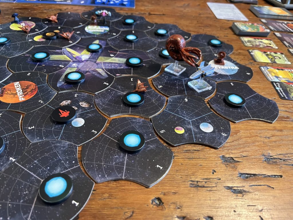 Now that we have a complete game in the office, we took the liberty of playing a cooperative game trying to thwart the Nautiloid Invasion. I nearly blew up and lost it for us, but Todd’s Railgun saved the day.