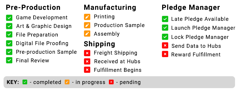 We’re currently working through final approvals with the factory. Manufacturing of both English and German versions should be completed within approximately 30 days, including all miniatures and dice. Final assembly, ink-washing, and Kickstarter labeling will require an additional 20 days, putting us on track for a January 30th pickup date.